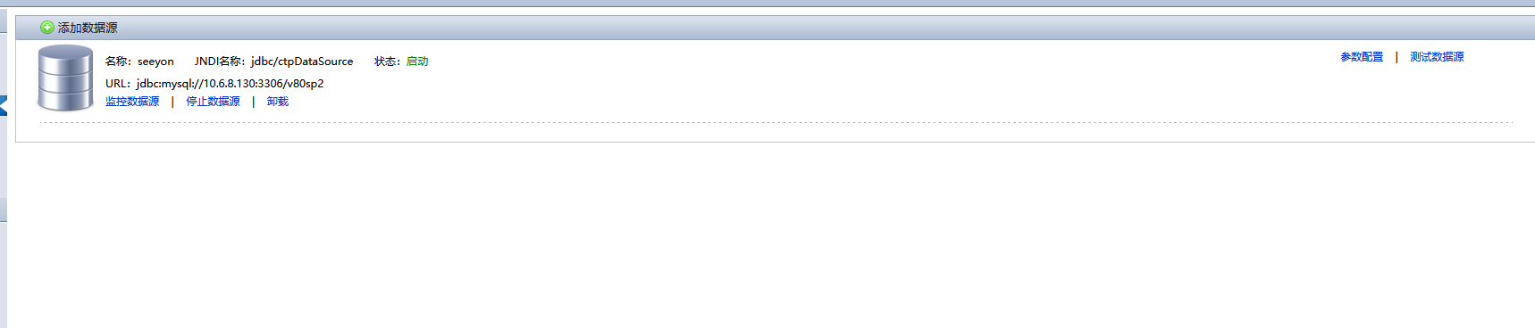 ,点击测试,右下角显示测试数据源seeyon成功,即为数据源添加成功。