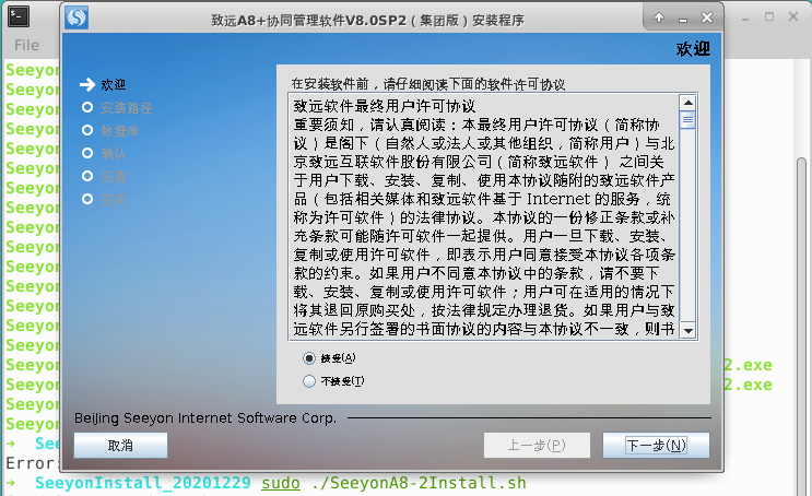 运行Seeyonconfig:sudo ./SeeyonConfig.sh