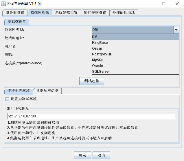 启动SeeyonConfig配置界面->数据库连接->选择数据库类型: