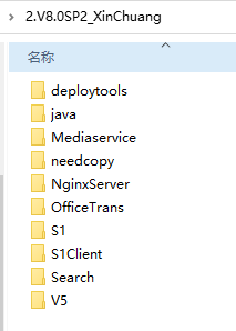 将商务公布的文件下载地址"XinChuang"目录放置到服务器上即可(注意:如果是升级,请勿覆盖V80SP1版本信创部署包同级目录),包中目录结构如下: