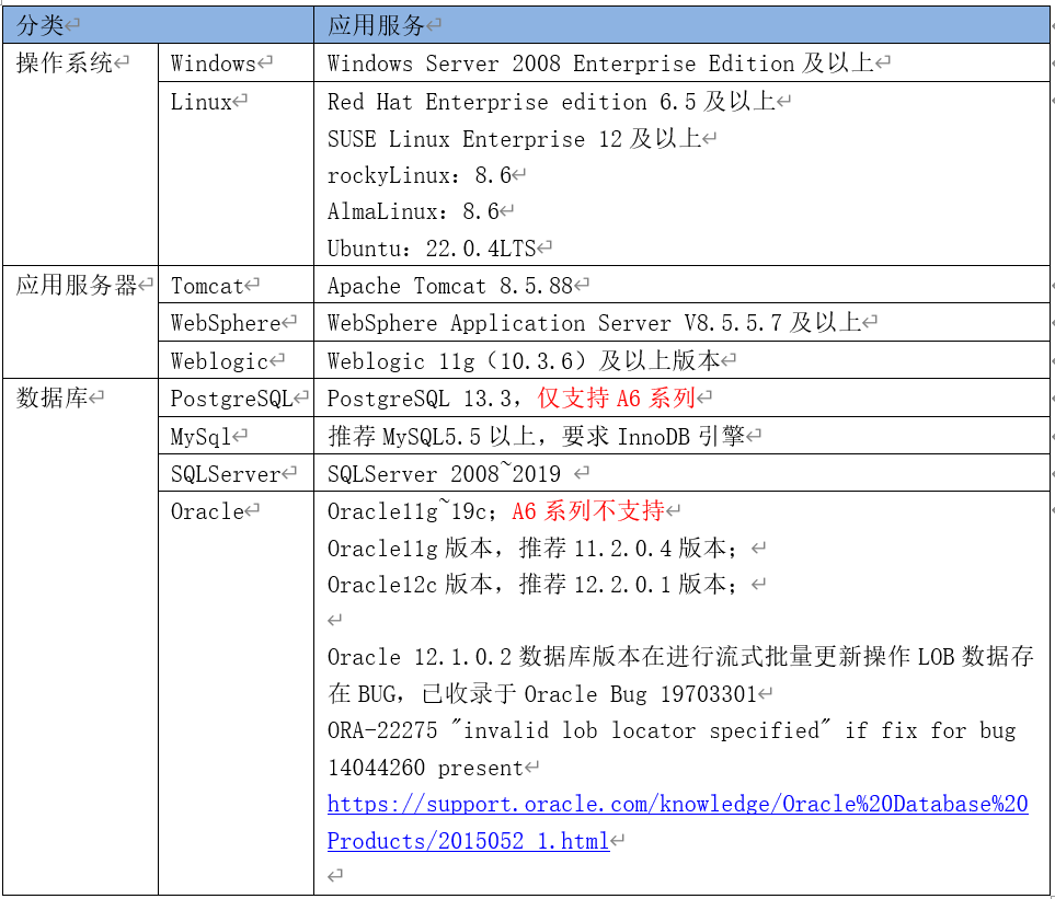 如果选用RedHat6/CentOS6操作系统,选用A6产品PostgreSQL数据库,请升级glibc版本至2.17再进行协同管理系统安装部署。