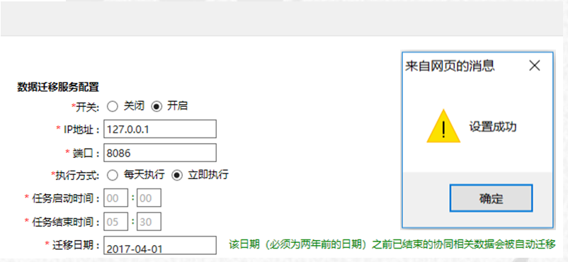 设置成功后,符合任务执行条件的时间内,历史数据迁移已在进行。
