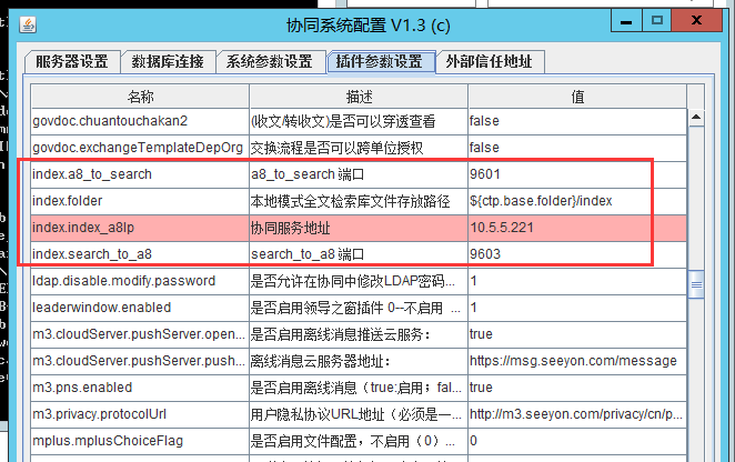 保存配置后,相关信息写入协同系统安装目录base\conf\plugin.properties文件,重启协同系统服务,使之生效。