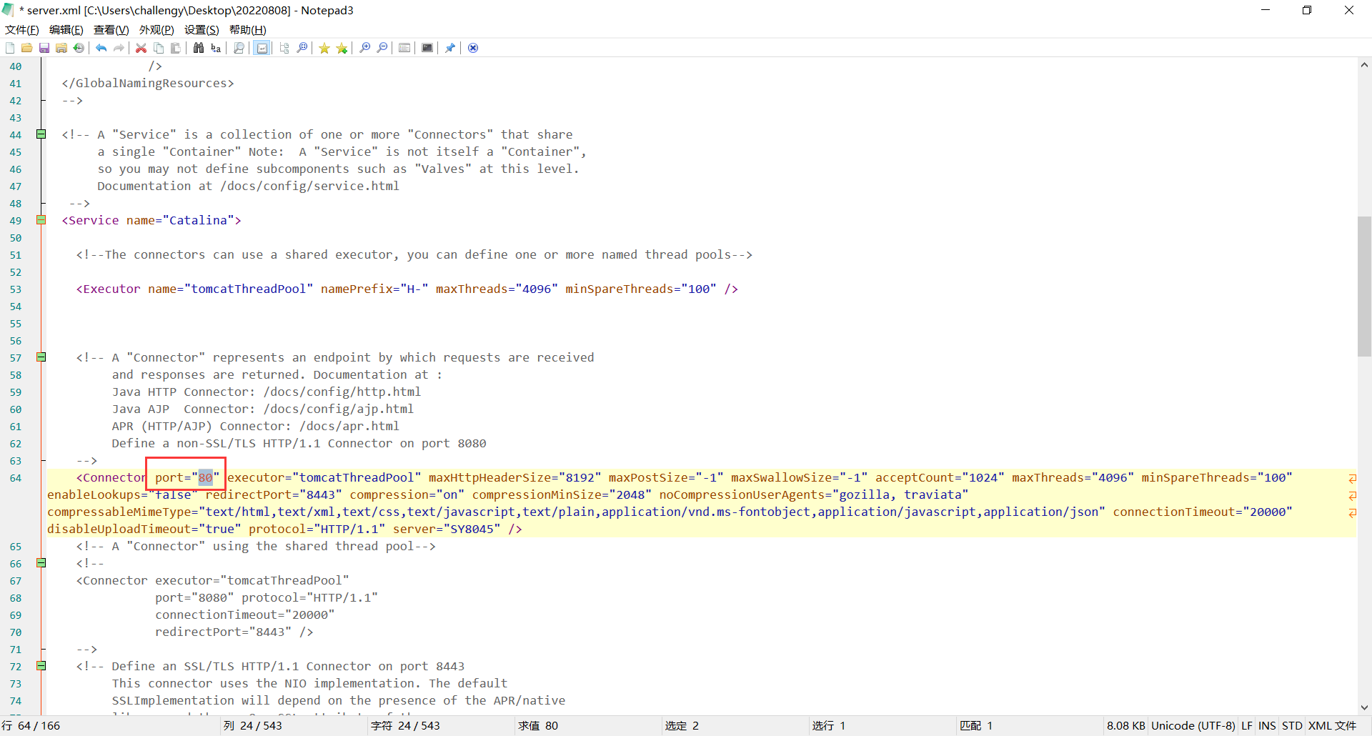 修改配置文件: