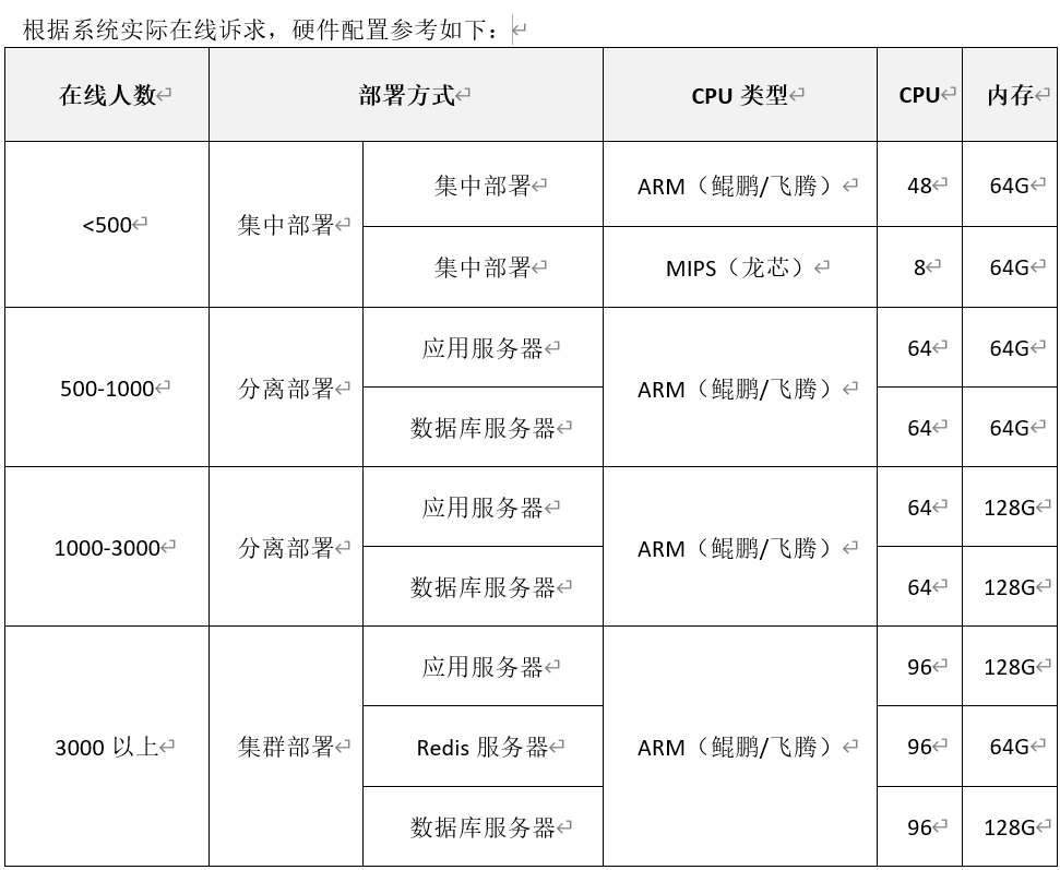 根据系统实际在线诉求,硬件配置参考如下: