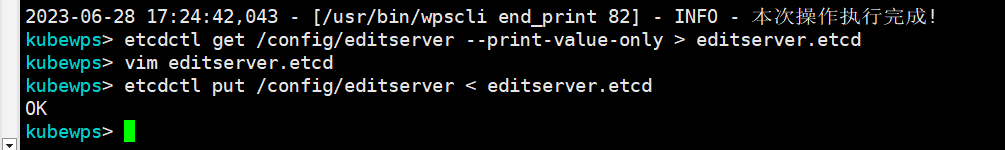 kubewps> etcdctl put /config/editserver < editserver.etcd