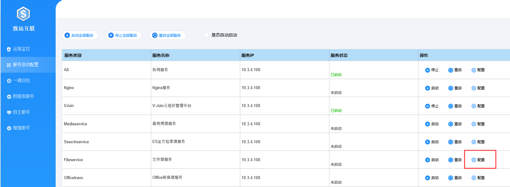 - 若已安装S1,可在S1的"服务启停配置"中,进行文件下载服务配置: