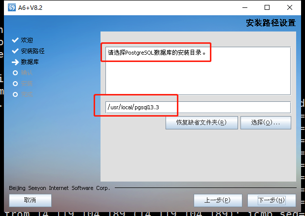 A6+版本安装时,如果选PostgreSQL数据库进行安装,可自定义PostgreSQL数据库服务安装路径