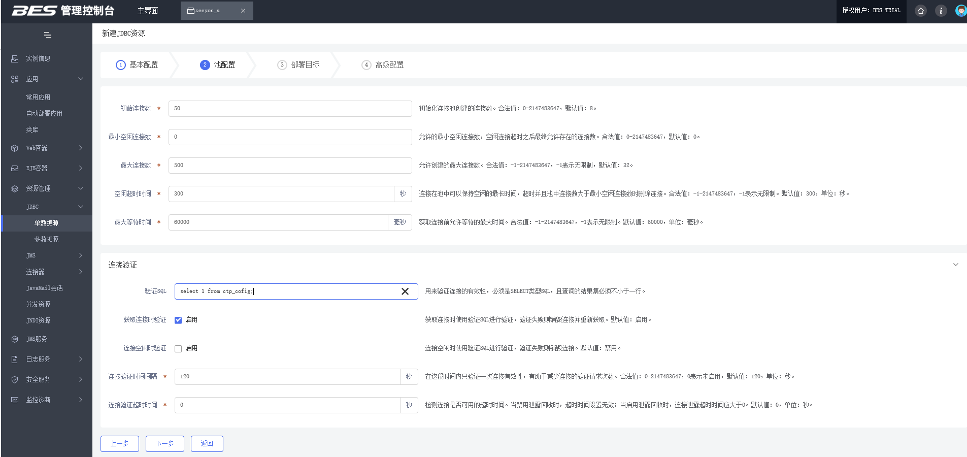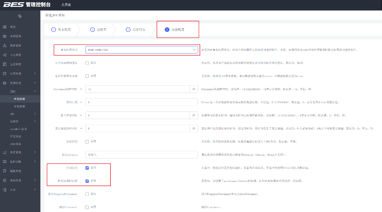 ps:宝兰德去年发布的中间件版本9.5.5开始,其提供的数据库连接池参数:自动提交和释放连接时回滚默认不再勾选,请主动进行勾选上
