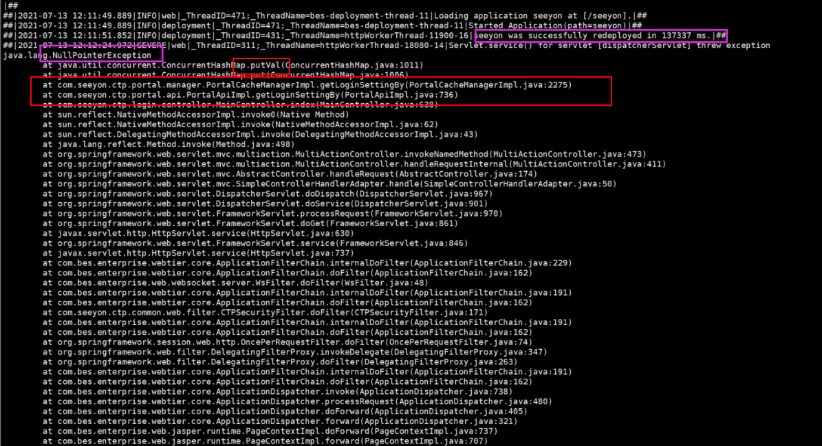 问题2:部署后访问首页报错:出现异常:java.lang.NullPointerException:null