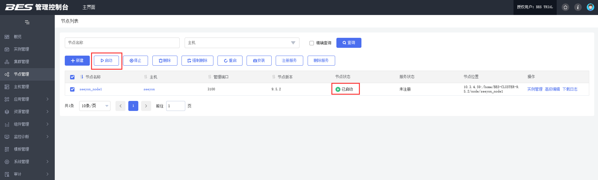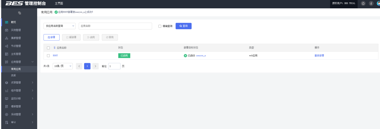 1.应用部署成功后可以登录管理控制台进行节点、实例的启停,启动实例会关联启动应用。