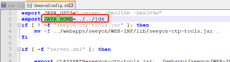 SeeyonConfig.sh中的JAVA_HOME路径为jdk的绝对路径,如图: