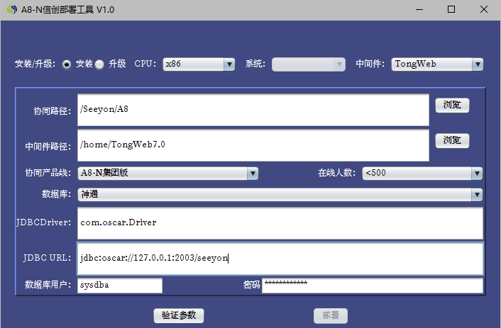 协同路径:要部署协同的路径,最终会将安装解压的的文件放到协同路径的V5目录下。