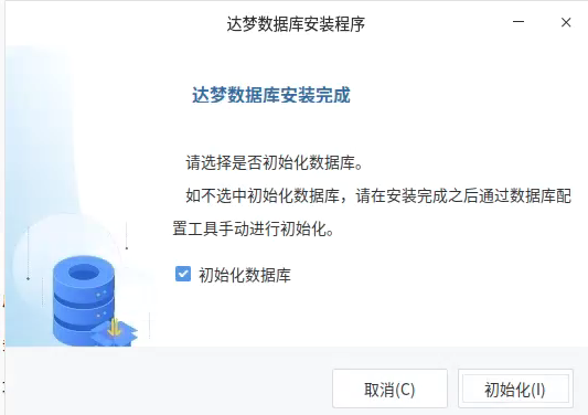等待安装即可,安装结束后有如下图界面,可以勾选初始化数据库用于创建一个数据库实例,也可以进入/opt/dmdbms/tool/(根据实际安装目录修改),启动dbca.sh,初始化目录。
