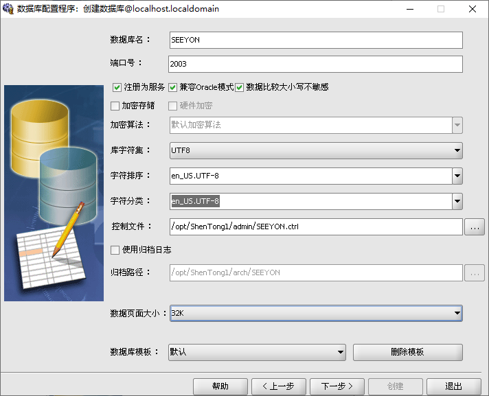 初始化数据库服务时,字符集需要选择UTF-8,并勾选"VARCHAR类型以字符为单位"。