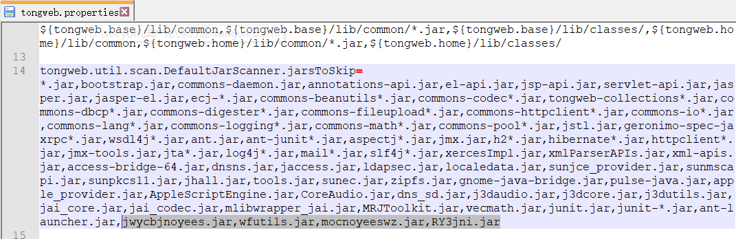 补丁包下文件Parser.class替换文件: tongweb安装目录\lib\tongweb.jar打开jar包,注意备份文件,需要替换的文件路径为:com\tongweb\jasper\compiler\Parser.class