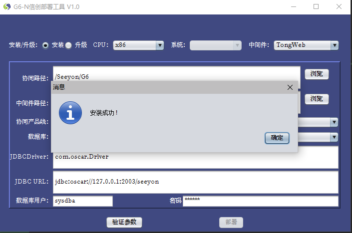 涉密操作系统厂商安装好对应版本的金蝶或东方通后,通过控制台按手册修改中间件参数后进行G6N产品部署;