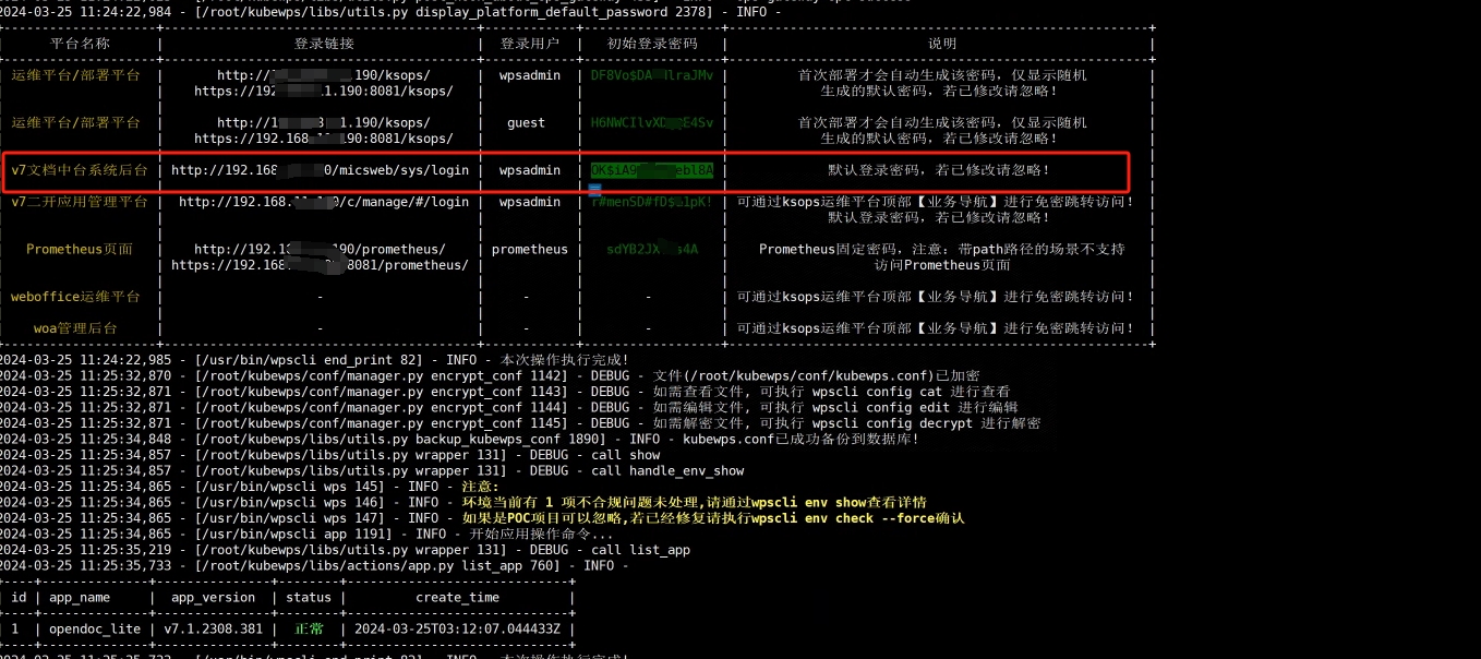 卸载:wpscli app remove opendoc_lite xx.xx.xx