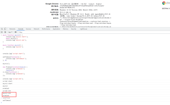 //所以老的v8版本await后的代码会后于promise.then()执行。这里的v8版本可以Chrome浏览器版本参考,Chrome canary 73之前及其后。