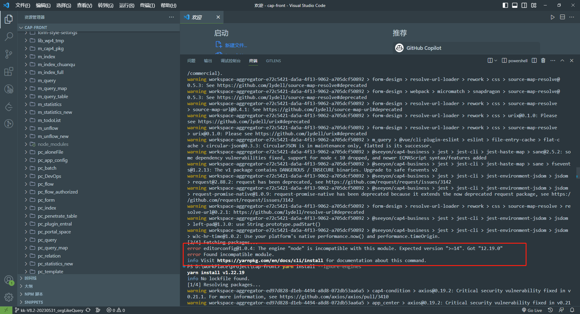 # 2、cap-front 外层yarn install 报错,如下图