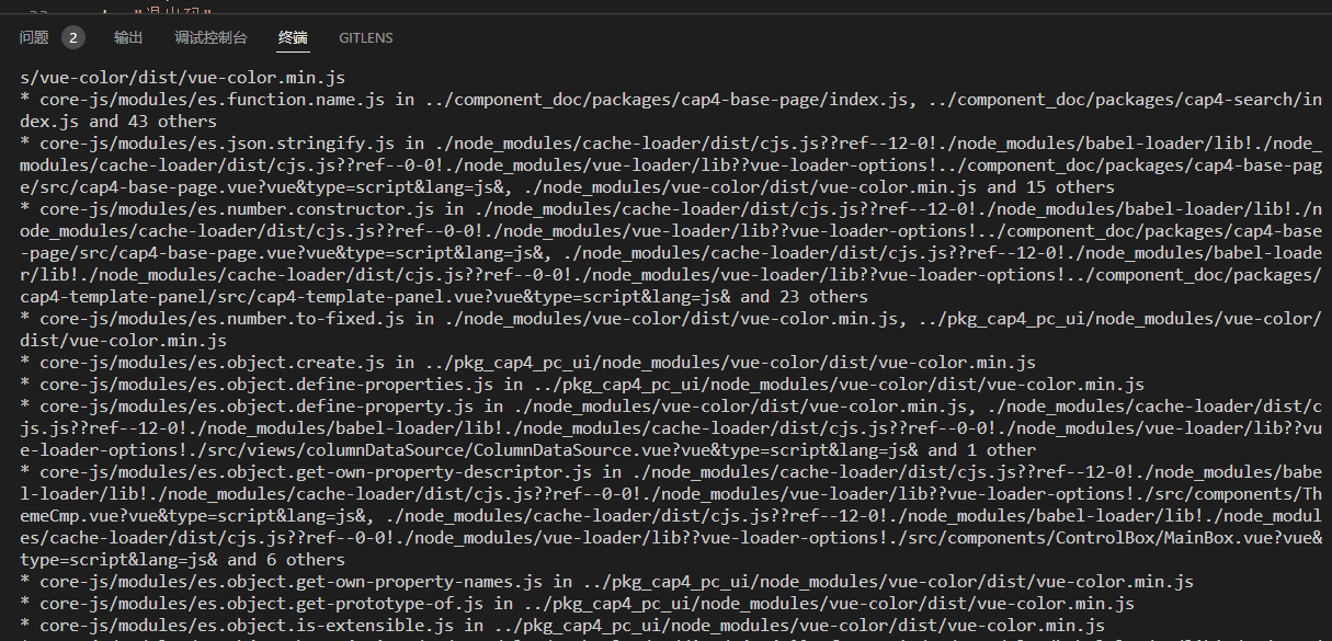 解决办法: 1、删除cap-front、以及子级所有的node_modules: rm -rf node_modules/ rm -rf */node_modules/ 2、在父级重新安装:yarn install --ignore-engines