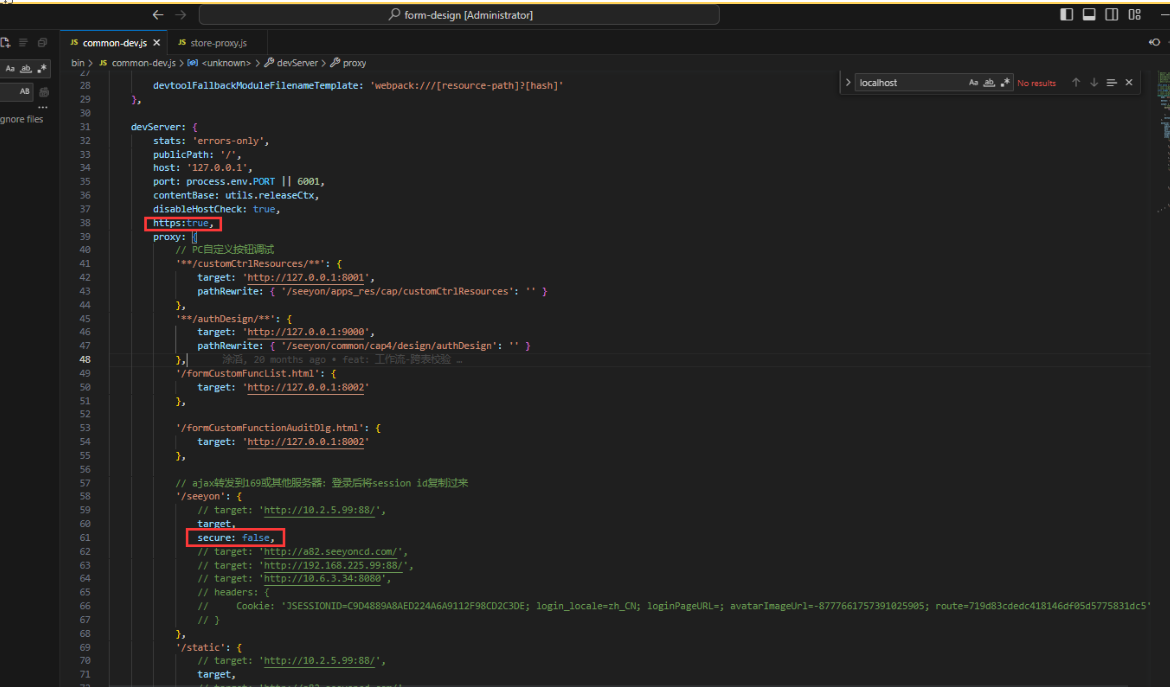解决:配置proxy,增加secure: false 以及 https:true