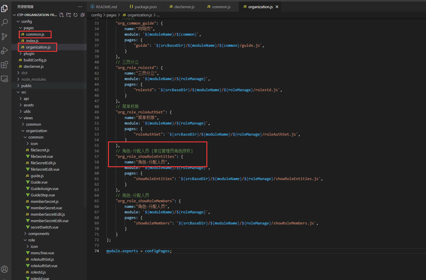 运行相关模块,对应模块在common/organization.js中可以查看