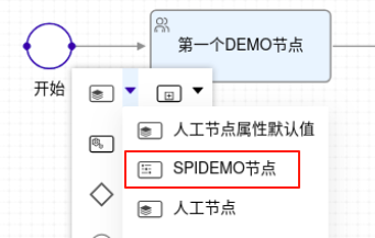 配置2.2步骤后,我们可以到bpm后台设计态中,"SPIDEMO节点"会自动添加到"人工节点"列表下面,效果如下: