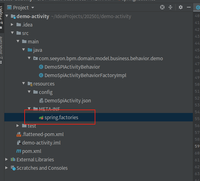 基于V8平台统一的SPI集成机制,我们在工程resources目录下面创建META-INF目录,并创建文件spring.factories。