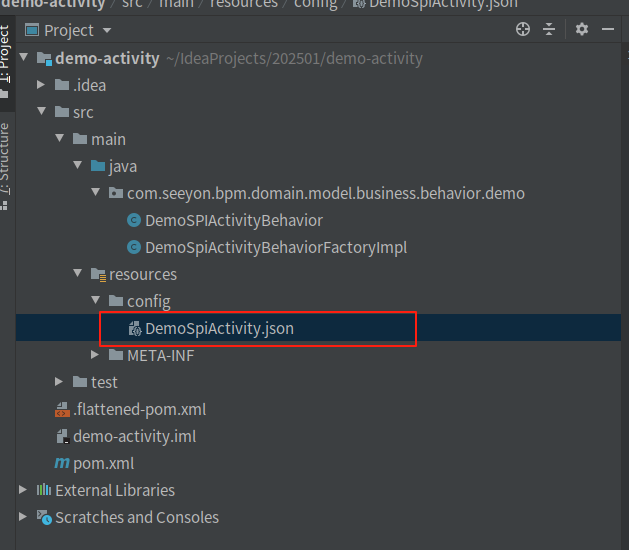 这里我们在resources目录下面创建一个config文件夹,并在其中创建一个DemoSpiActivity.json的json文件