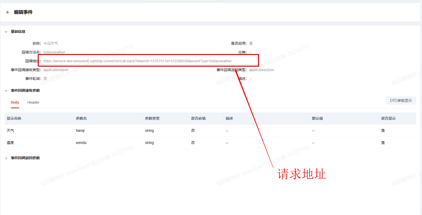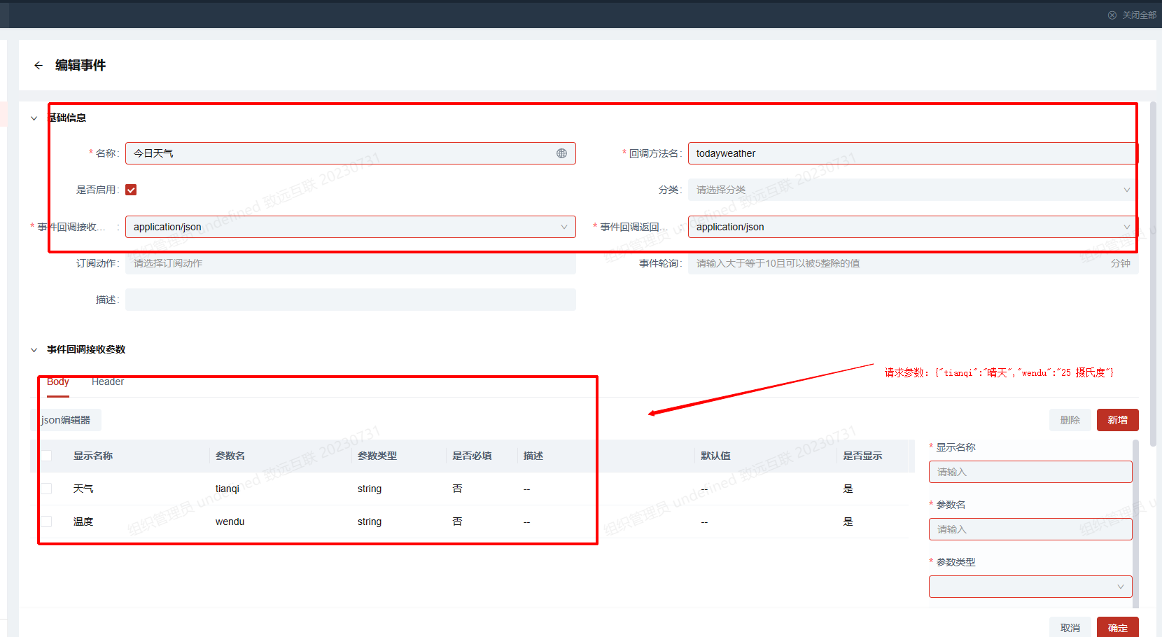 # 保存事件后会生成对应请求地址图三,请求参数在图二,这样就成了完整的rest请求