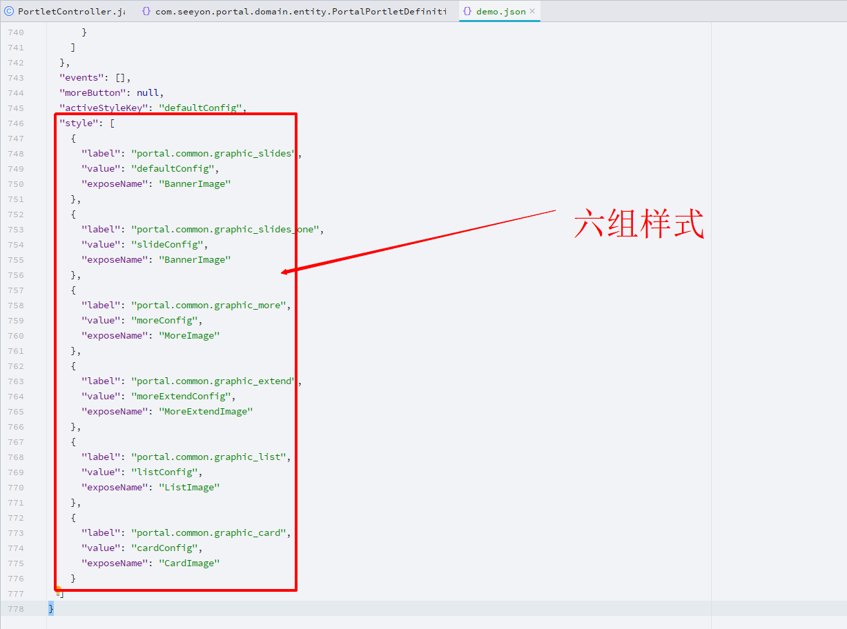 提取目标文件init/tenant/com.seeyon.portal.domain.entity.PortalPortletDefinition.json中的definitionInfo和mobileDefinitionInfo字段数据。横幅图片definitionInfo字段中存了6份样式数据。可以将每份单独提出到init/tenant/com.seeyon.portal.domain.entity.PortalPortletStyleSheet.json中,一份对应一个实体