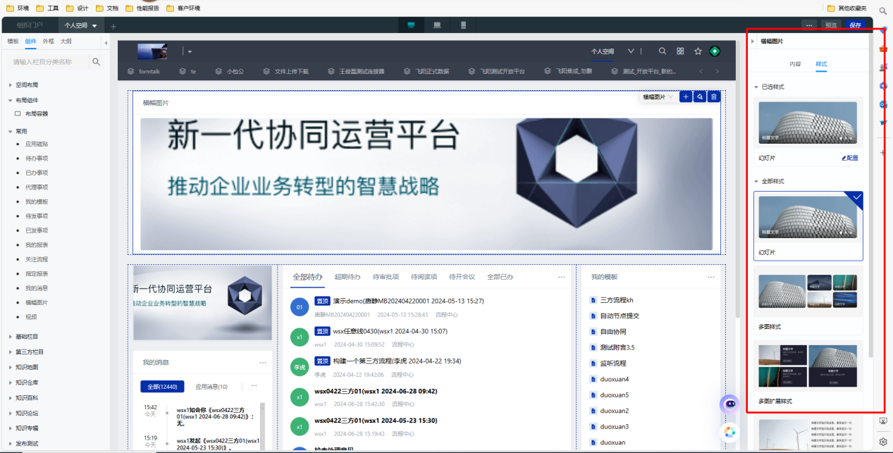 **门户(3.5版)**提供栏目拖拽式样式设计,涉及到各个组自定义栏目需要升级适配问题。